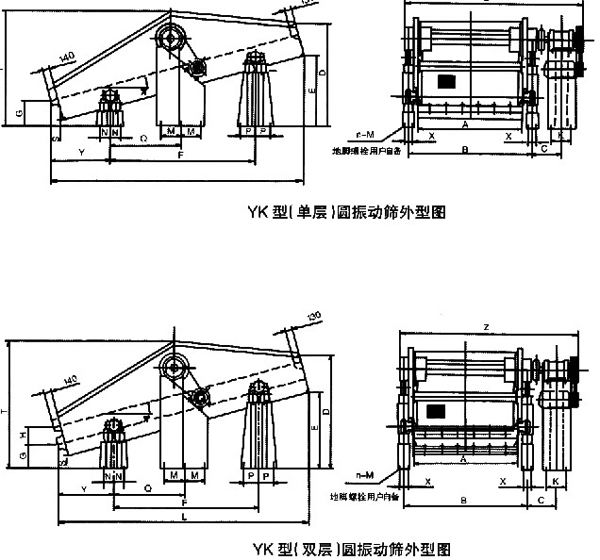 YK型圓振動(dòng)篩技術(shù)性能及外形尺寸